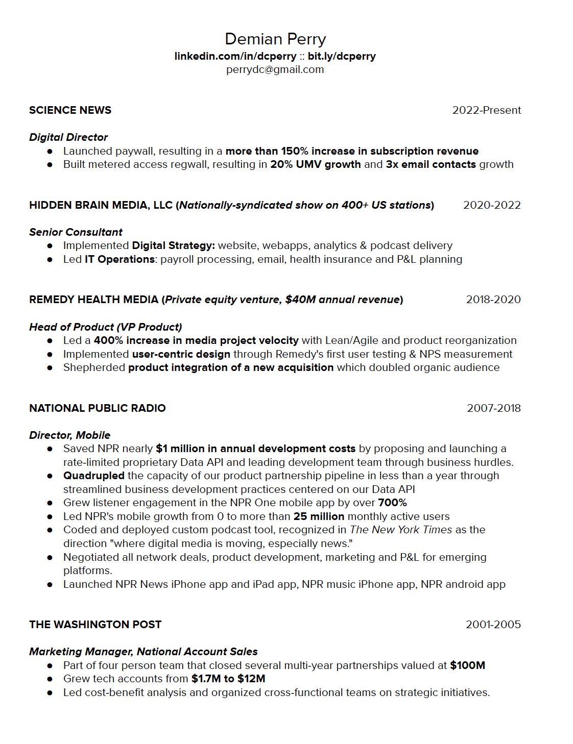 I’ve led digital change at startups, as well as larger companies such as NPR, Yahoo! and The Washington Post.